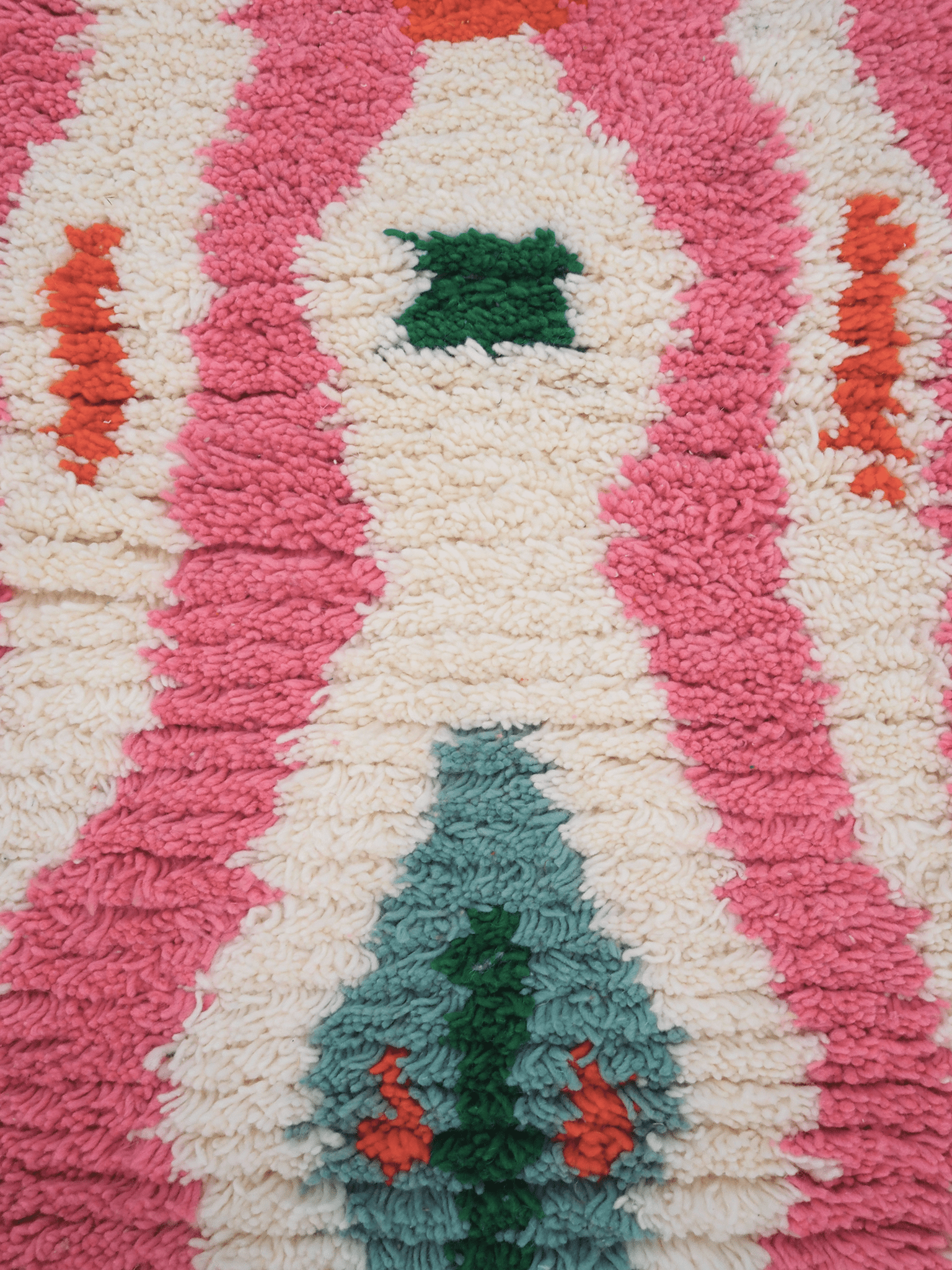 The word boucherouite itself means used clothing or simply scraps. Instead of using wool to weave the rugs, women in Morocco started using cotton as well as lurex and nylon. It’s not uncommon to find a cool disco shirt or glittery leggings woven into these beauties ;)