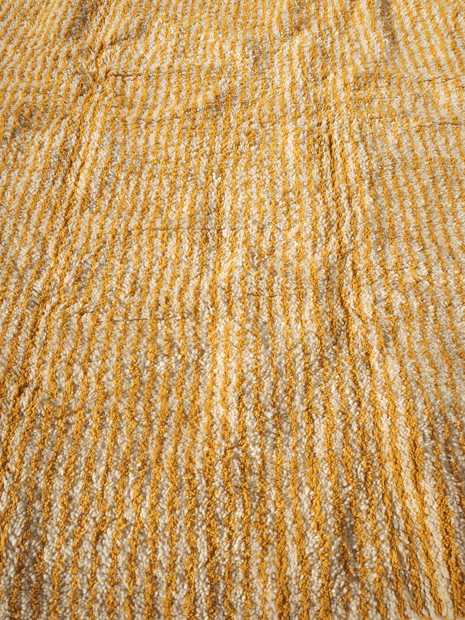 After weaving, the rug is trimmed to ensure an even pile. The fringes are finished by hand, adding to the rug’s signature look.