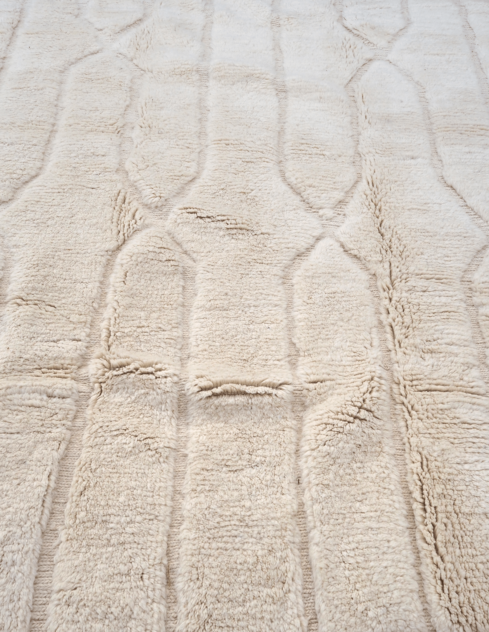 Hand knotted especially for you in the ways of the Beni Ourain nomadic tribes that inhabit the snowy Atlas Mountains in the area of Taza, Morocco. These tribes are renowned for producing some of the best wool in the world and their rugs have a remarkably soft and fluffy texture. Your made to order rug will be created knot by knot with ancient techniques passed down from mother to daughter through the generations.