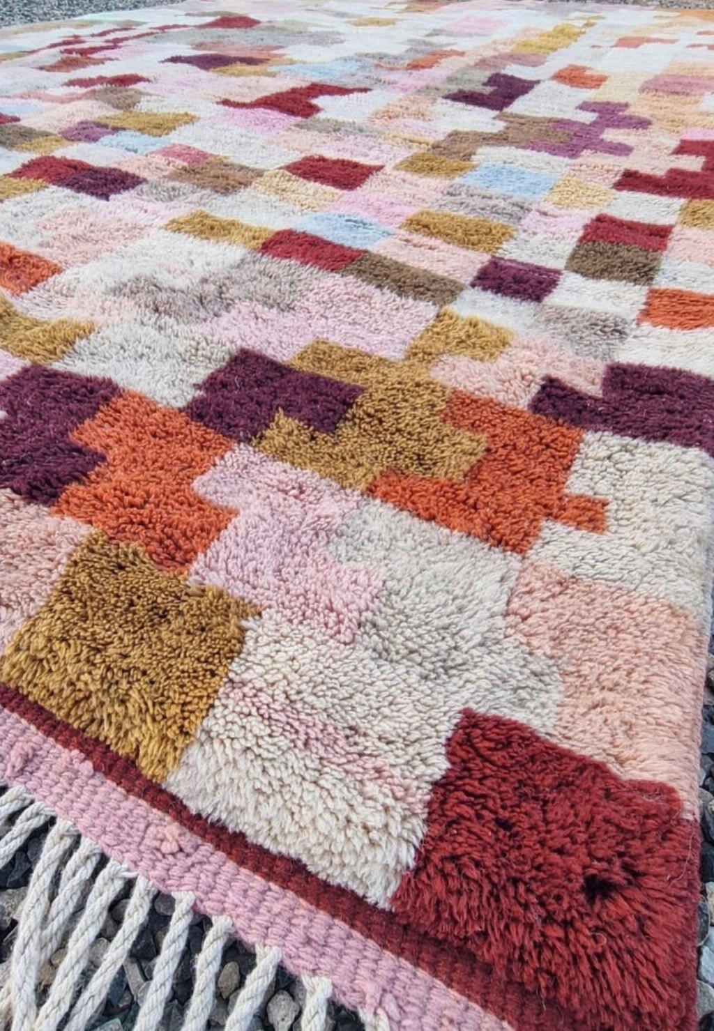 Hand knotted especially for you in the rich tradition of Moroccan rug-making, where centuries of craftsmanship come together to create pieces that are both beautiful and meaningful. While M’rirt is a relatively new phenomenon in the world of Moroccan rugs, they build on a foundation of ancient techniques passed down through generations of artisans across the country.